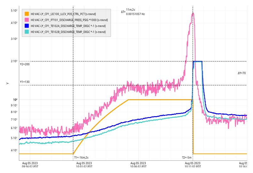 At 17:45UTC the major FMCS alarm went off for low temperatures at MY as read by H0:FMC-MY_VEA_202B_DEGF. At the time it was around 60F, but just started going back up and is at 60.2F. In the attachment you can see how much the temperature has dropped over the past day or so.