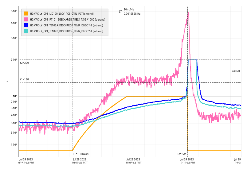 17:04 UTC FMC-MY_VEA202C_DEGF alarm went off followed a few moments later by H0:FMC-MY_VEA_202D_DEGF