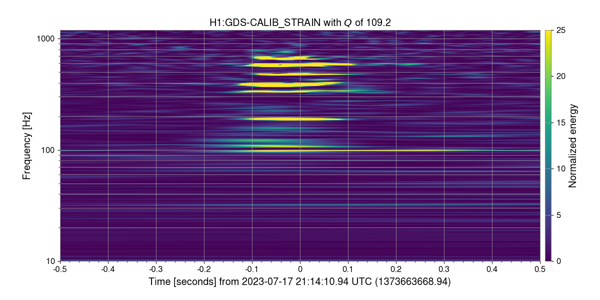 The first scan is from O3 and the second from O4. The separation between the blobs is similar (about 0.2 secs). A gravityspy search for fast scatter in O3b shows a whole lot of these transients.