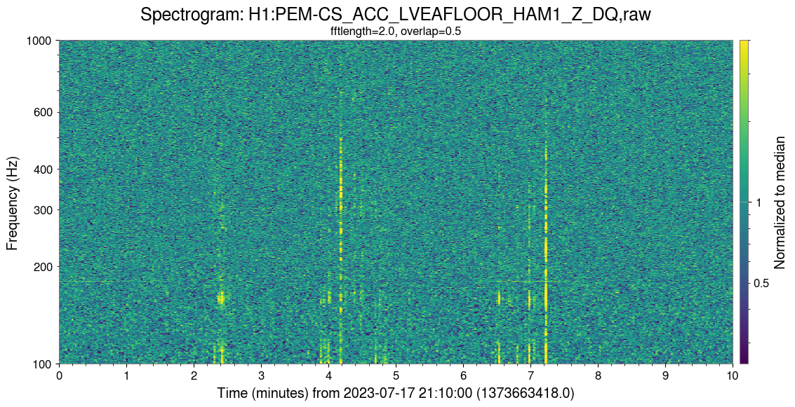 We also see in some of these glitches a loud noise in HAM1 HPI and LVEA floor accelerometer channels. See the attached example omega scans showing one glitch from June 26 showing up in H1:HPI-HAM1_BLND_L4C_Y_IN1_DQ and H1:PEM-CS_ACC_LVEAFLOOR_HAM1_Z_DQ. You can also see other accelerometers showing up in the full omega scans here but those were ones that showed up especially strong in several of the glitch times we examined. These are obvious in the omega scans at the specific glitch times, but this motion can't be clearly seen in the day-long spectrograms in the summary pages.
