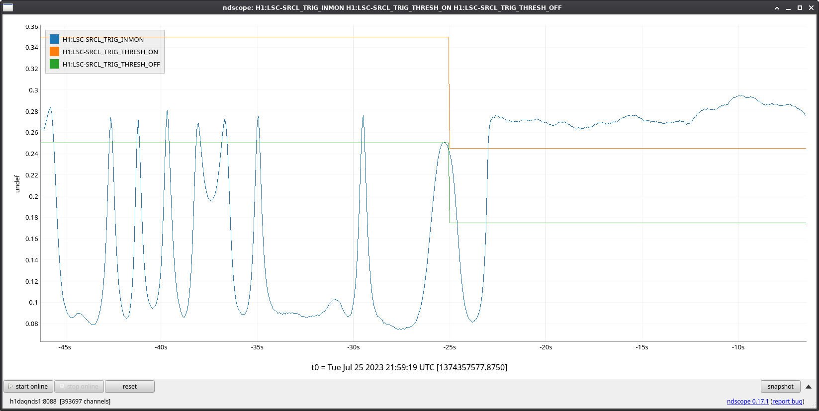I uploaded the new controller in FM1 as a multiplicative change to the previous controller. So one can turn on this 2.6 Hz boost by engaging FM1 (5 second ramp) together with the other FMs while locked.