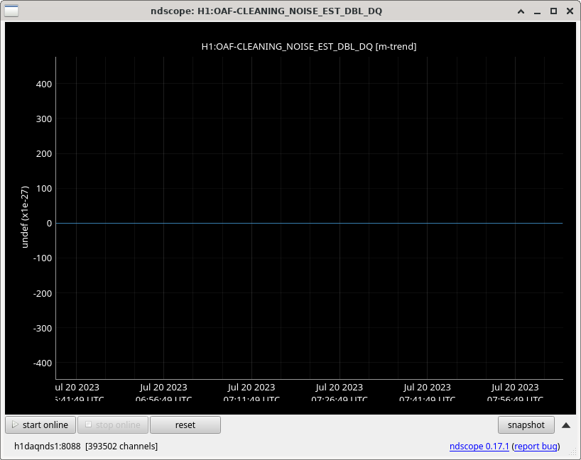 The NonSENS subtraction should be off. The first attachment shows that indeed the noise estimate output by the front end NonSENS is zeros to the 1e-27 level (these are in the same strain units as GDS-CALIB, and I just didn't bother scrolling in more to see how 'zero' I can make the y-axis) during a time when the discrepancies are visible on the summary page.