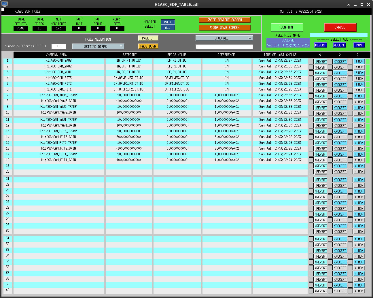 As soon as the camera servo was fixed, the CAMERA SERVO was made immediately happy by having PIT3 & YAW3 signals, and we were able to go back to observing.