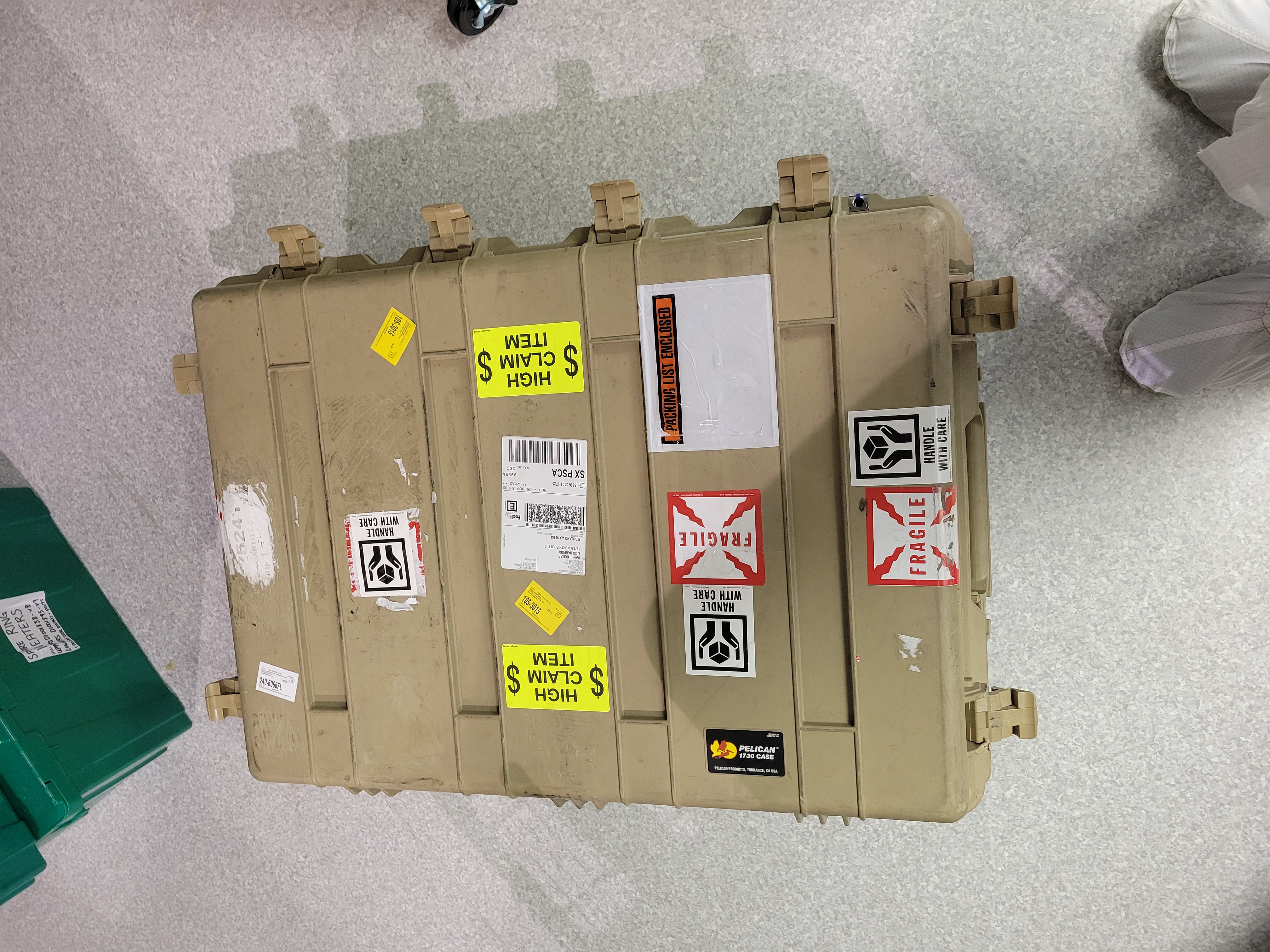 This afternoon I picked up the Pelican case with the HXDS from Rahul and brought it up to the triples lab to unwrap, and inspect.