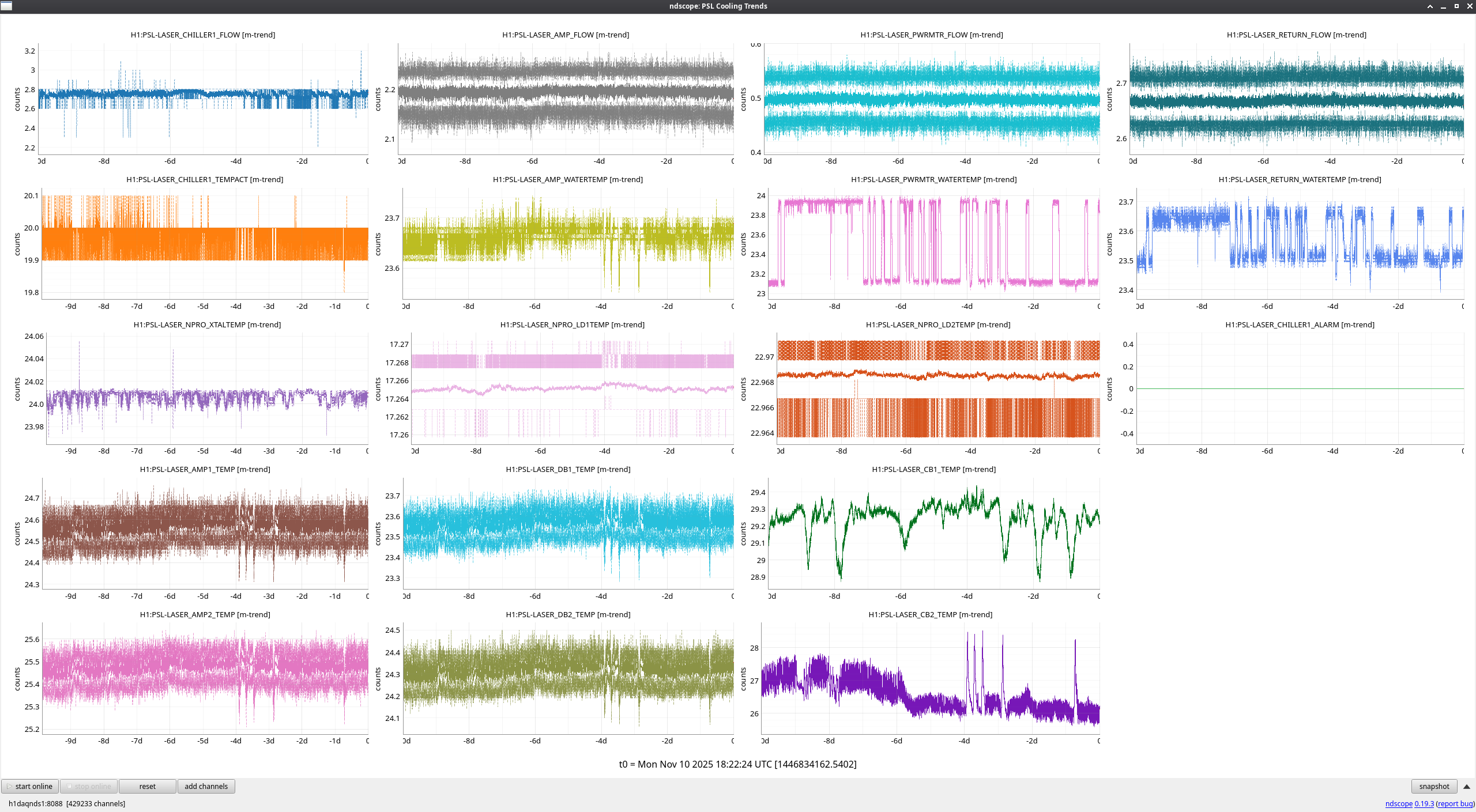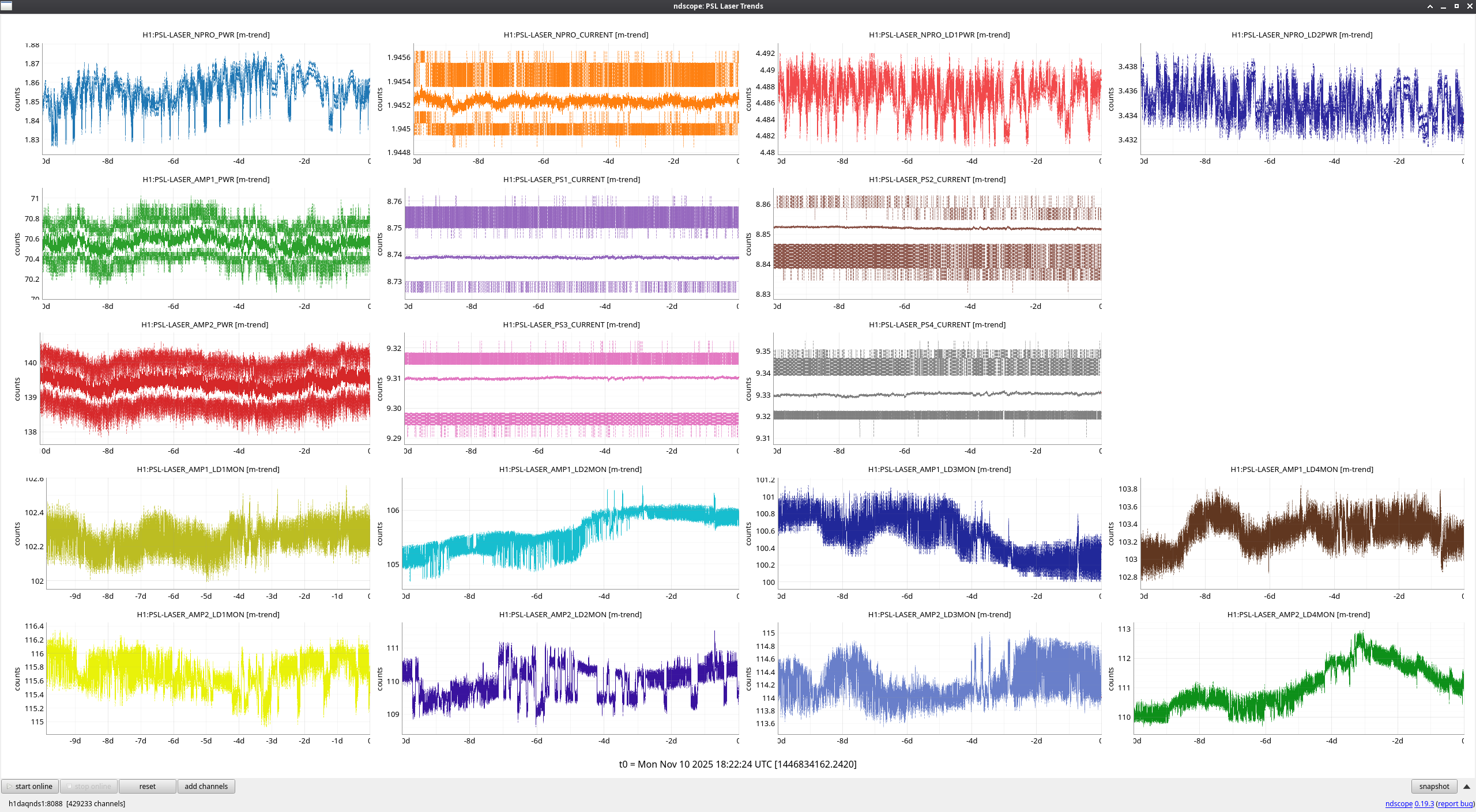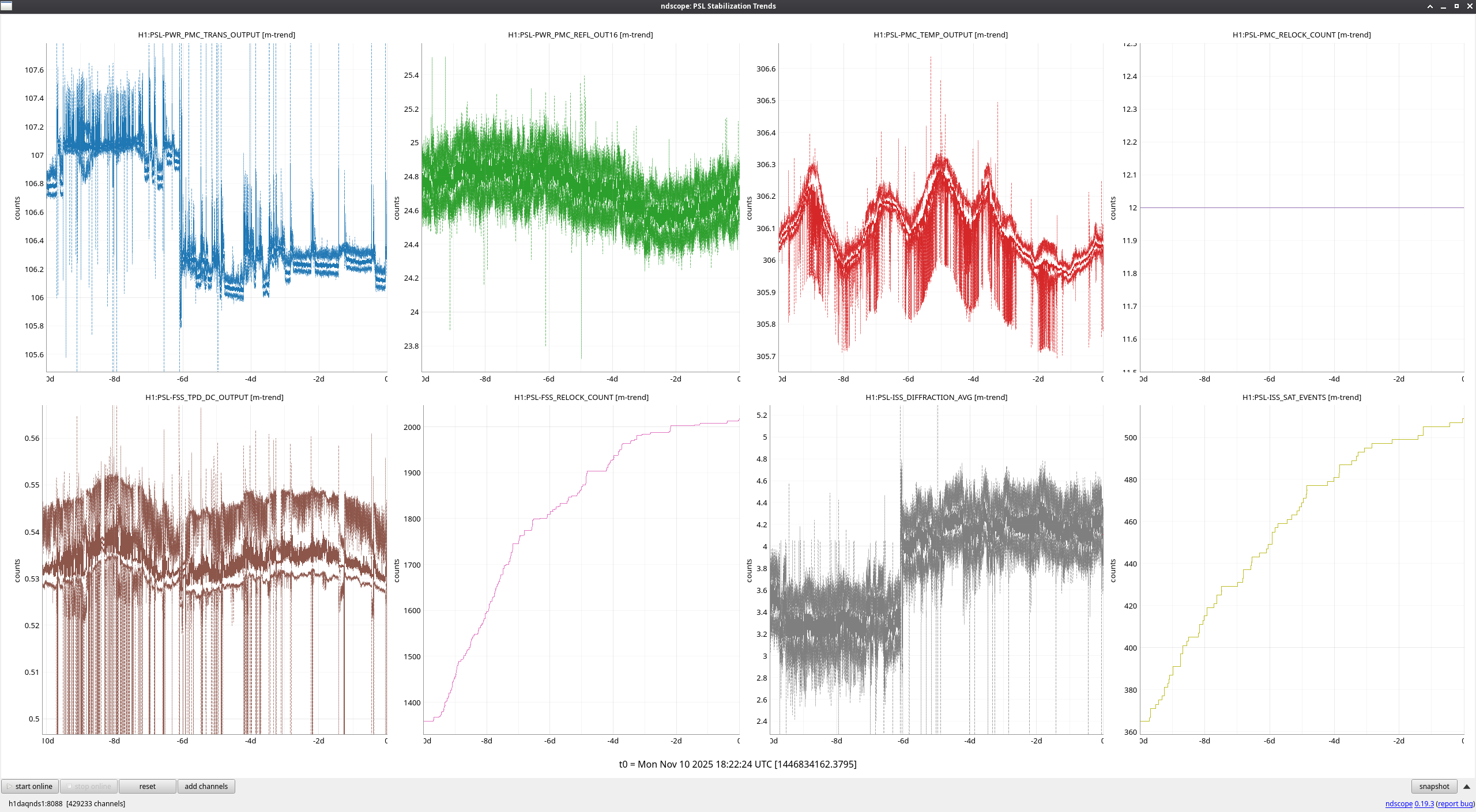 First image is how the trends display on the ndscope, it's a bit hard to see all of the channels here.
