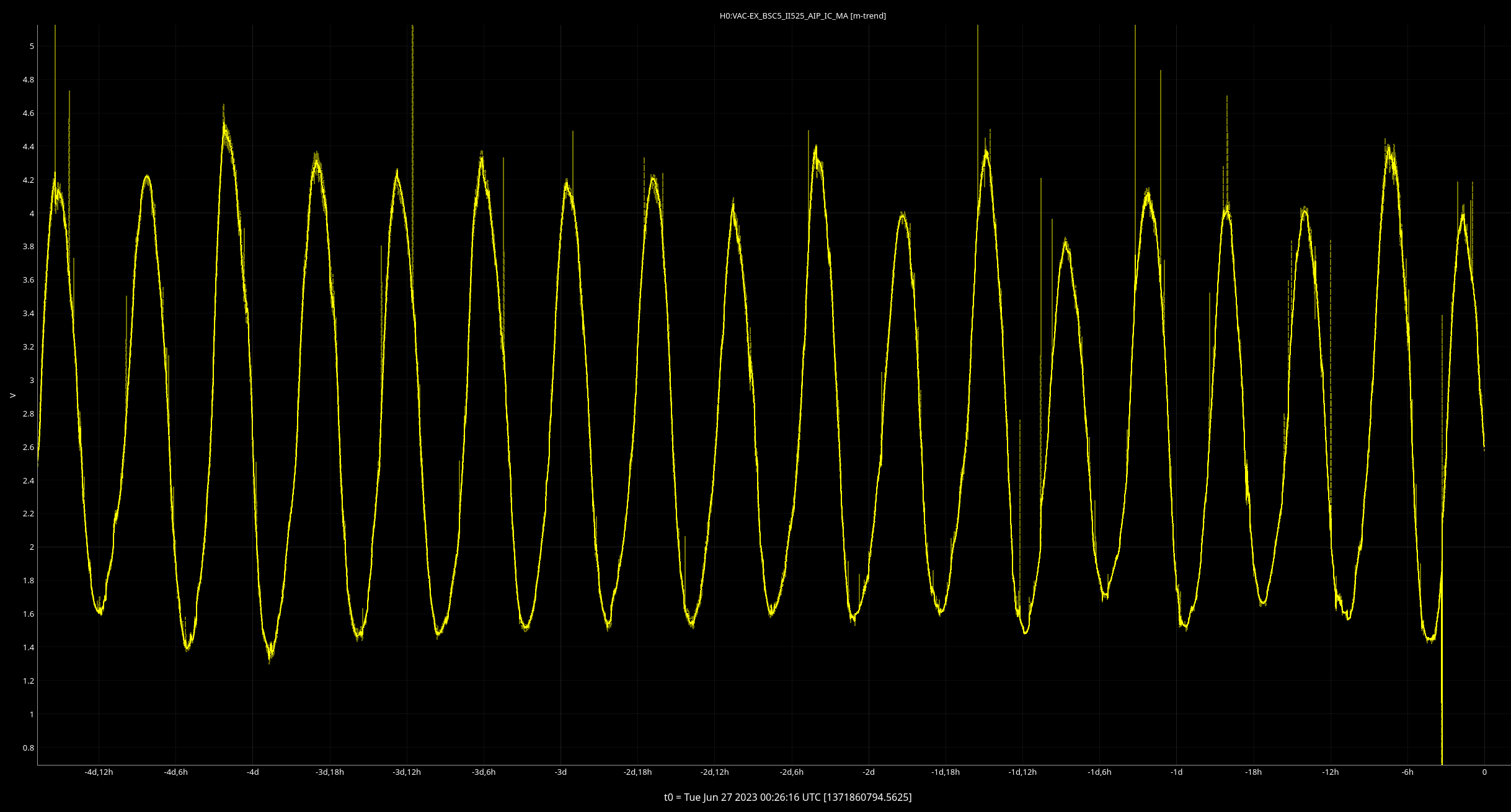 Today at 21:06 utc, we removed BSC5 AIP controller and replace it with a "new" one, this was done in an attempt to solve the oscillation noted on BSC5 readback channel, see attachment.