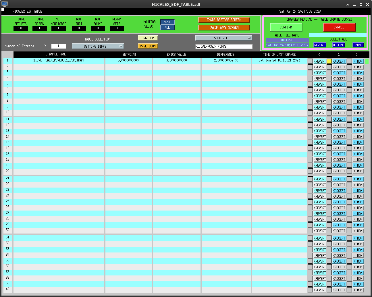 - Ran into a CALEX SDF diff once at NLN, since it is a tramp value I decided to just accept it and if need be, can be reverted on Monday - Tagging CAL
