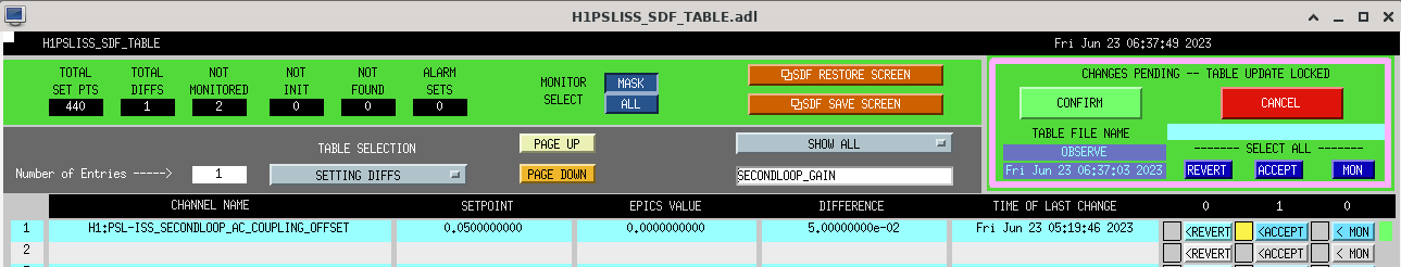From this Evan pointed me to ISS 2nd Loop Offset alogs: