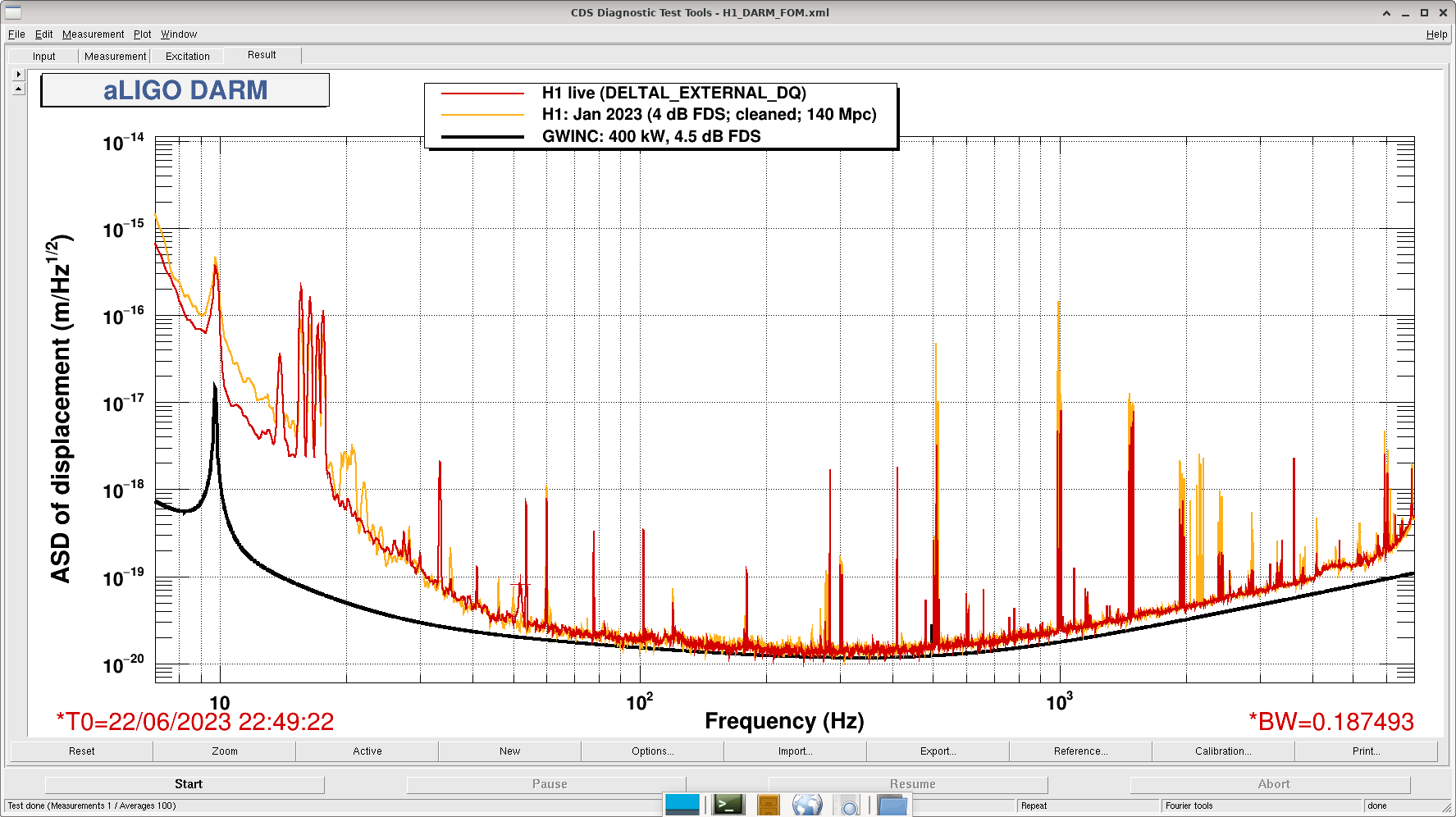 The first attachment to this log compares the measurement I used as our new reference (in red, live trace), to the January 2023 reference in yellow. There is also the gwinc trace for 400 kW and 4.5 dB FDS in black.