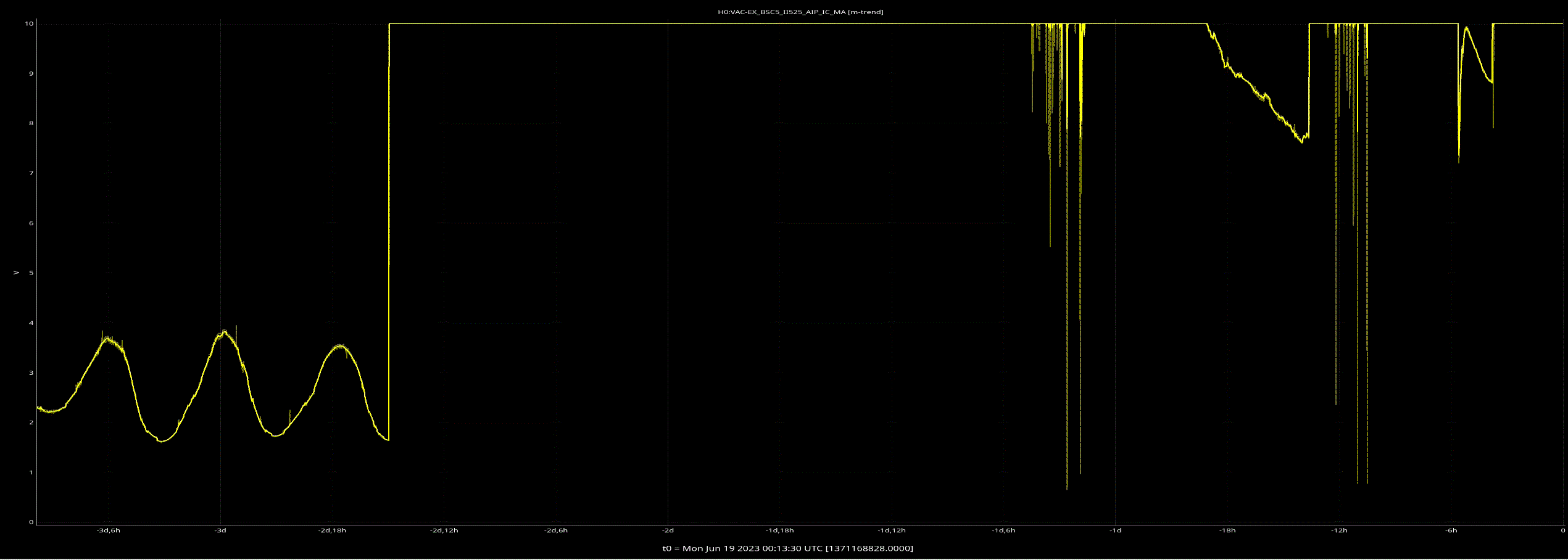 It appears as if the annulus ion pump is back, and there appears to be no human intervention. We'll keep an eye on it. This is the aLOG about the failure.